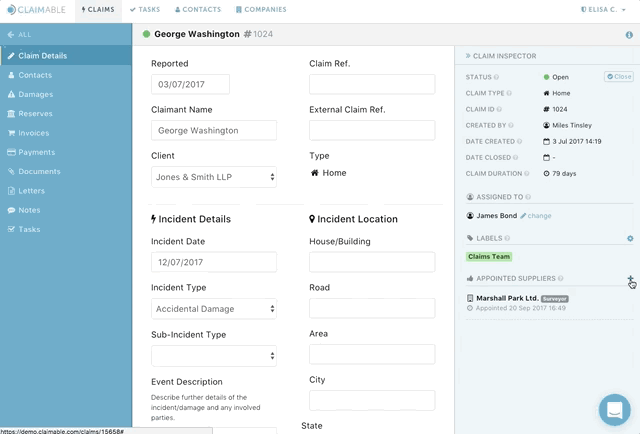 You can now appoint suppliers to claims in Claimable, making it easy to allocate work and manage your supplier network!
