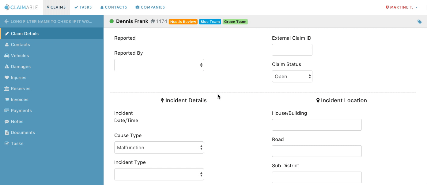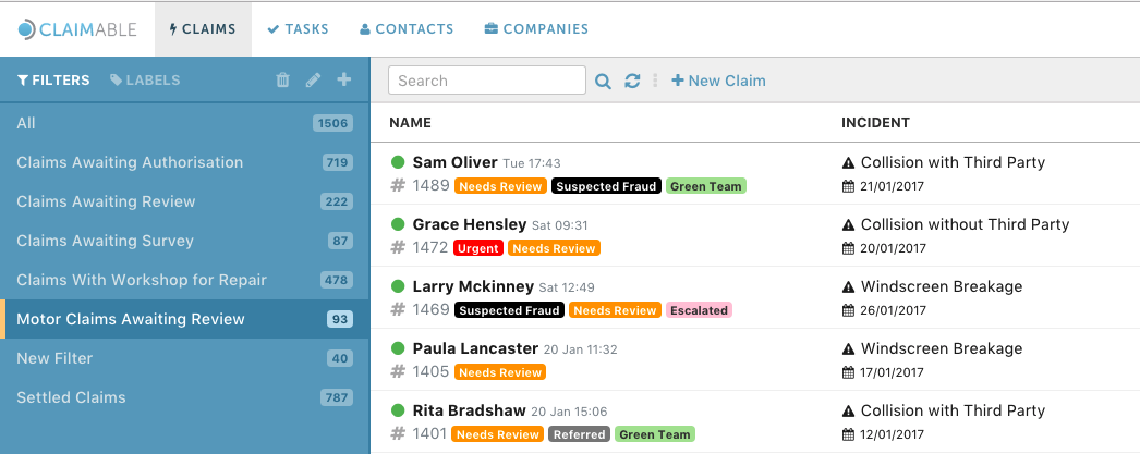 Another of the key new features in Claimable Version 3, is filters. Filters allow for conditions to be applied to claims, tasks, contacts or companies, to help organise and report on data.