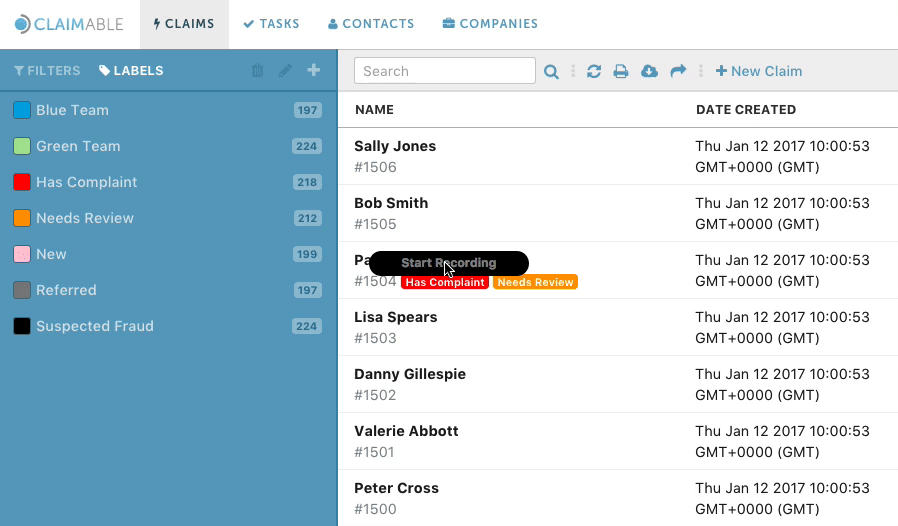 For example, there could be labels for "Needs Review" or "Settled" or "Referred", to indicate the state of a given claim.